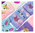 • 1 Caderno de Pelúcia (21x15,5 cm, 72 folhas pautadas – modelos sortidos: unicórnio, ursinho, coelhinho ou outro super fofo)