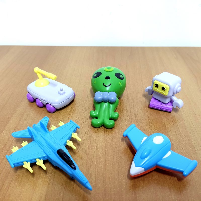 10x Cartelas com brinquedos espaciais com 5 Peças em Cada