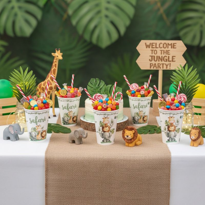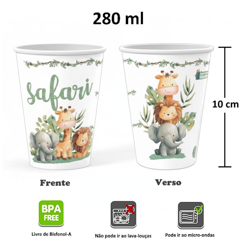 Copo do Safari 280ml Premium para Festa Infantil Aniversário Doces Decoração Sacolinha Surpresa