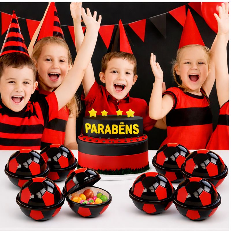 Pote Bola de Futebol Preto com Vermelho Rubro Negro Tema para Festa de Times Infantil Decoração de Aniversário Lembrança p/ Sacola Surpresa