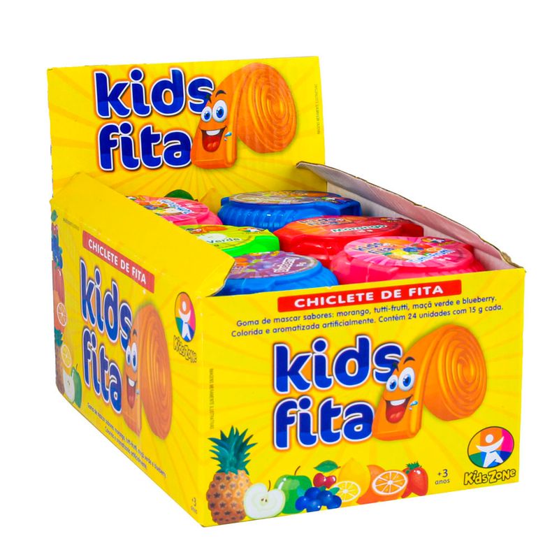 1003; Kidszone; KIDS FITA GOMA DE MASCAR; Chiclete de fita; Goma de mascar sabores; morango; tutti-frutti; maça verde e blueberry; 24 unidades com 15g cada;