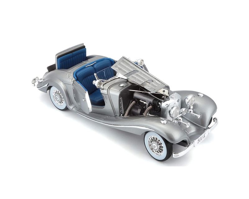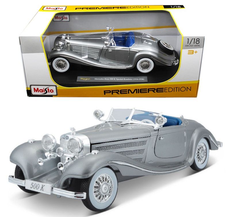 1936 Mercedes-Benz 500 K Typ SpecialroadsterMarca do produto: Maisto.Coleção: Premiere Edition.Escala: 1/18 (aproximadamente 28 cm de comprimento).Pneus de Borracha.Abre as portas, capô e porta malas.Acompanha Base Expositora.Rodas Esterçam e o volante acompanha o movimento.Miniatura em Metal com partes de plástico.