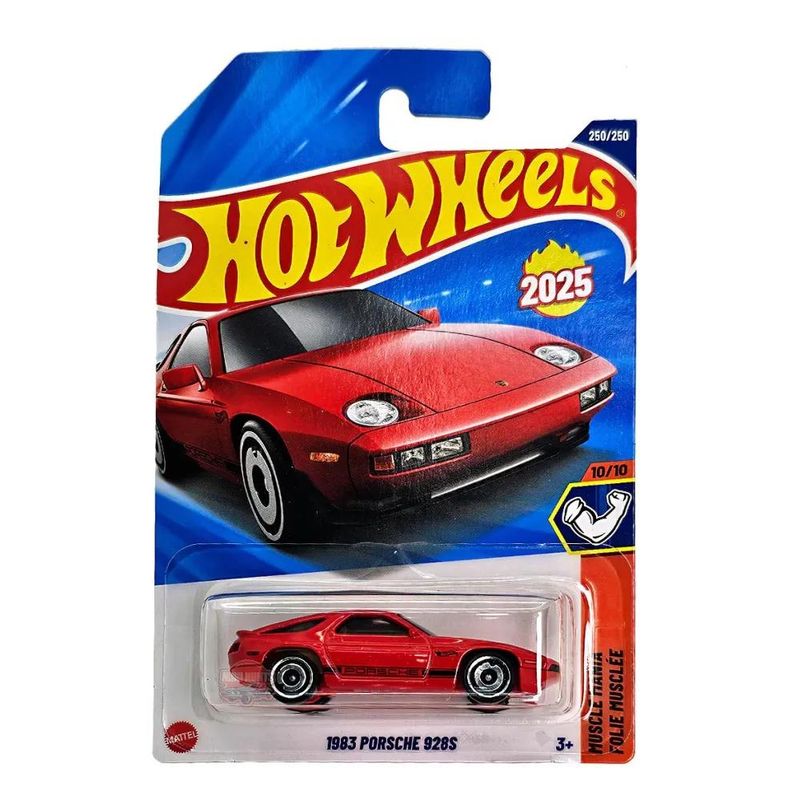 Aposte na elegância e potência clássica com este incrível Hot Wheels 1983 Porsche 928S! Inspirado no icônico esportivo alemão dos anos 80, este modelo vem em vermelho vibrante com detalhes autênticos, incluindo o logotipo Porsche nas laterais e rodas estilo retrô.\n\nParte da coleção 2025, este é o carro 250/250 e o 10/10 da série Muscle Mania – Pole Muscle, representando o equilíbrio perfeito entre luxo e desempenho. Ideal para colecionadores e apaixonados por miniaturas clássicas. Idade recomendada:+3 anos;Composição/Material:Metal;Funciona com pilhas:Não;Brinquedo com luz:Não;Brinquedo com som:Não;Dimensões:16,7x7x20 cm;Peso:0,202 kg;Código de Barras:7898692795006;Garantia do Fornecedor:3 Meses contra defeito de fabricação;
