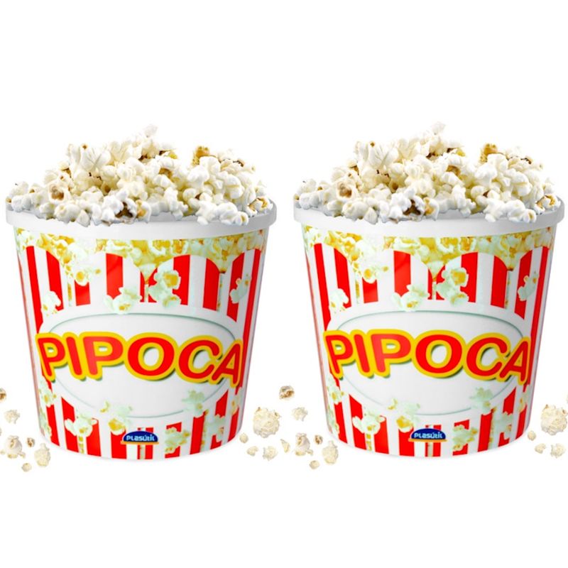 Kit com 2 Pote Balde de Pipocas Clássico Oval 2,1 Litros - Plasútil