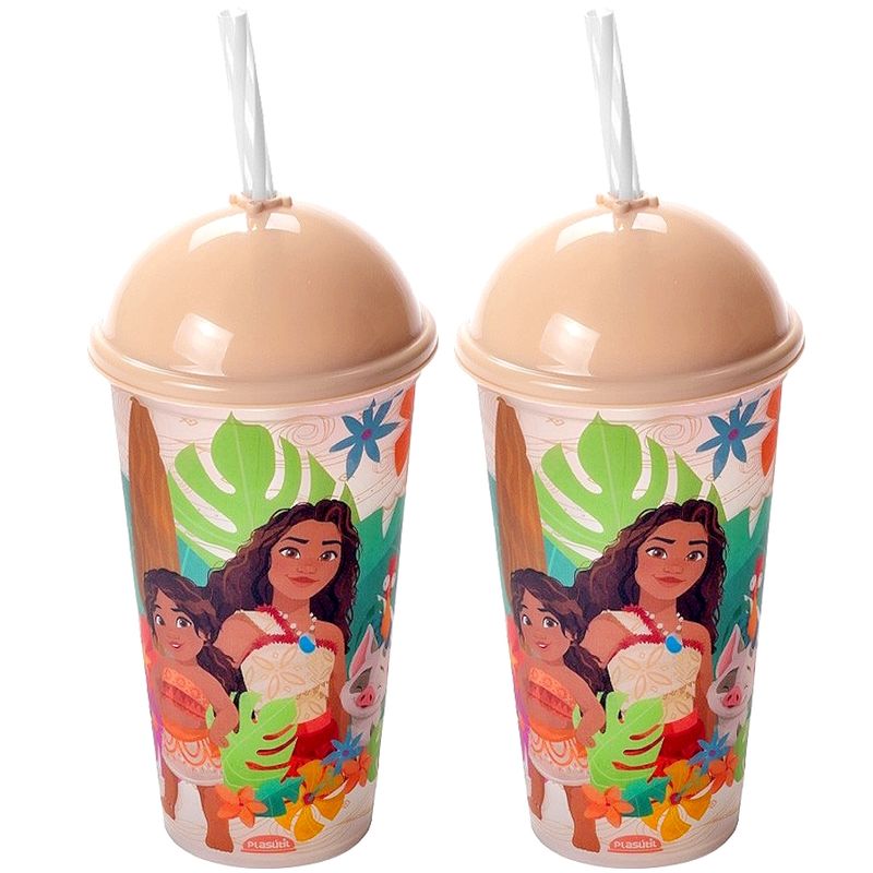 Copos Shake Moana com Canudo de alta qualidade da Plasutil - 2 Unidades