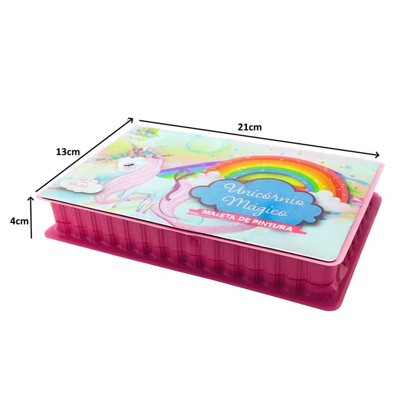 Kit 2 Maletas de Pintura Infantil com Jogo de Canetinhas e Kit de Materiais Escolares Para Pintar Unicórnio - 42 Peças cada
