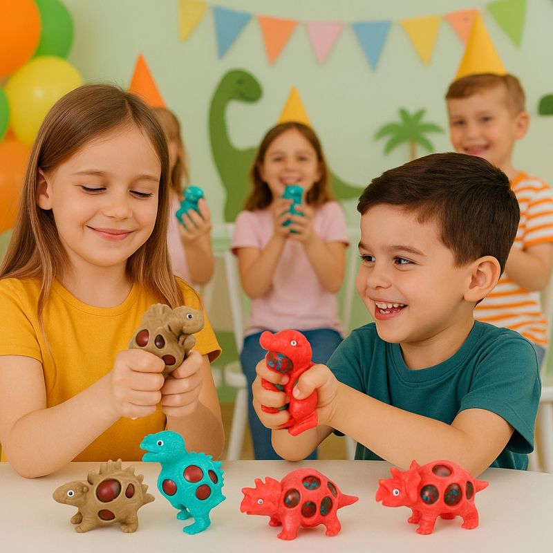 A Caixa Expositora com 12 Brinquedos Dinossauro Squishy é perfeita para lembrancinhas de festas infantis, brindes ou revenda. Os dinossauros super macios e fofinho, feito com material elástico que pode ser puxado, esticado e apertado, ideal como brinquedo antiestresse. Com design divertido e toque agradável, agrada crianças e adultos, promovendo relaxamento e estímulo sensorial. A embalagem display facilita a exposição em festas ou pontos de venda, oferecendo uma apresentação organizada e atrativa para encantar os pequenos convidados.