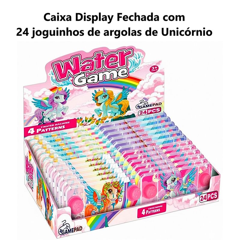 Joguinho Aquaplay Unicórnio Brinquedo Mini Game de água divertido auxilia na Coordenação Motora - Caixa Display 24 Peças Atacado Revenda Lembrança para Festa Infantil