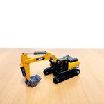 Trator Escavadeira de Metal Infantil Realista Articulado Com Esteira de Borracha Cabine Gira 360º Escala 1:64