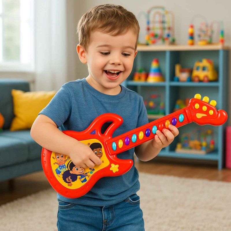 A Guitarra Eletrônica 3 Palavrinhas é o instrumento perfeito para os pequenos músicos que estão começando a explorar o mundo da música com alegria e criatividade! Com um design colorido e vibrante, inspirado na famosa turminha cristã infantil, torna as brincadeiras ainda mais divertidas e envolventes.