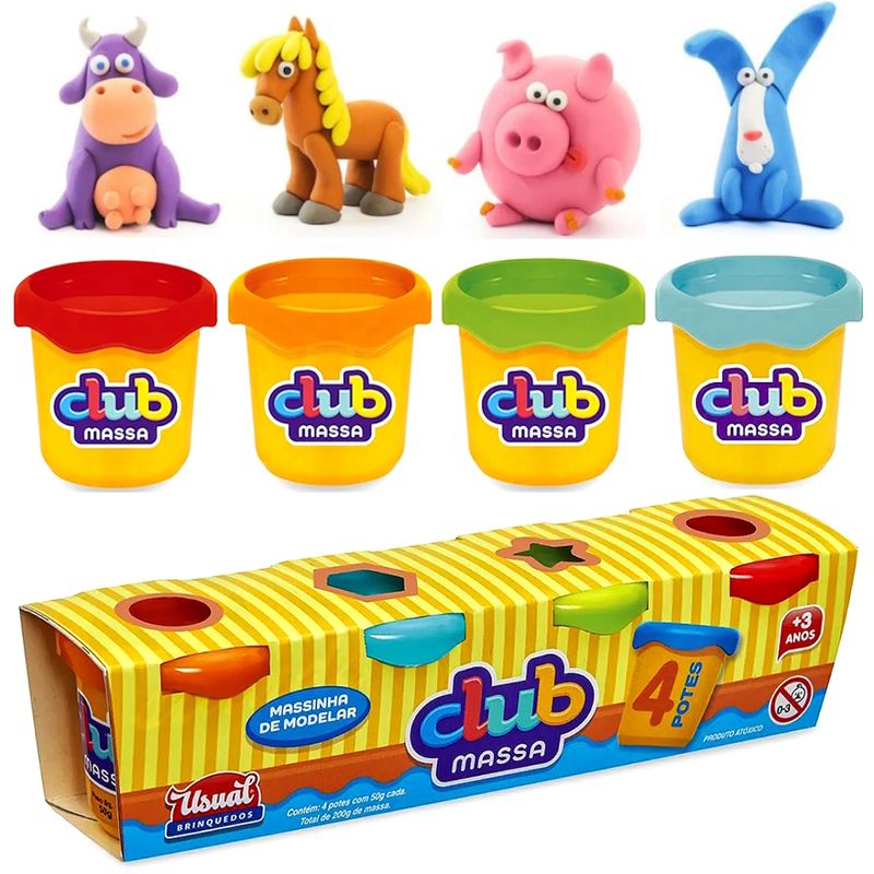 Kit com 4 Potes de Massinha de Modelar Infantil Atóxico - Club Massa Usual