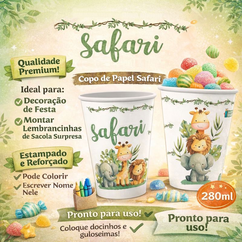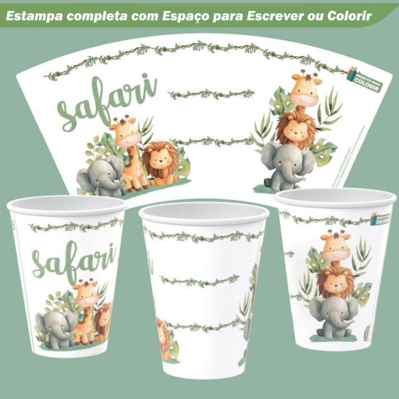 Copo do Safari 280ml Premium para Festa Infantil Aniversário Doces Decoração Sacolinha Surpresa