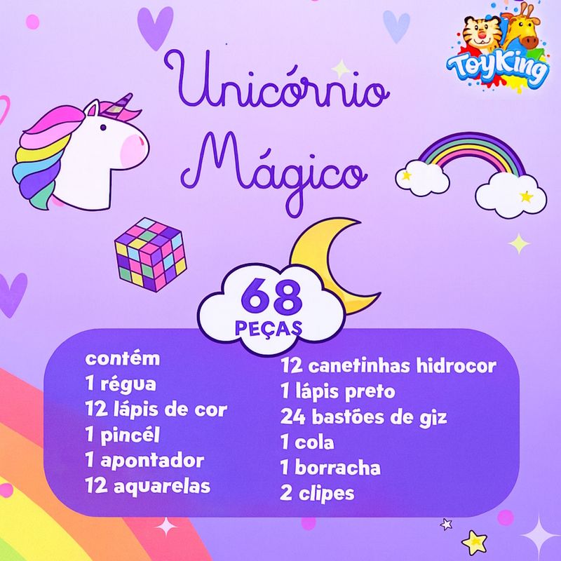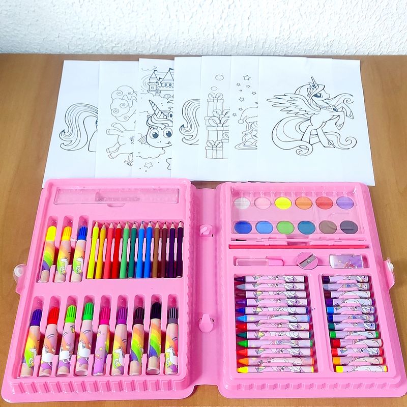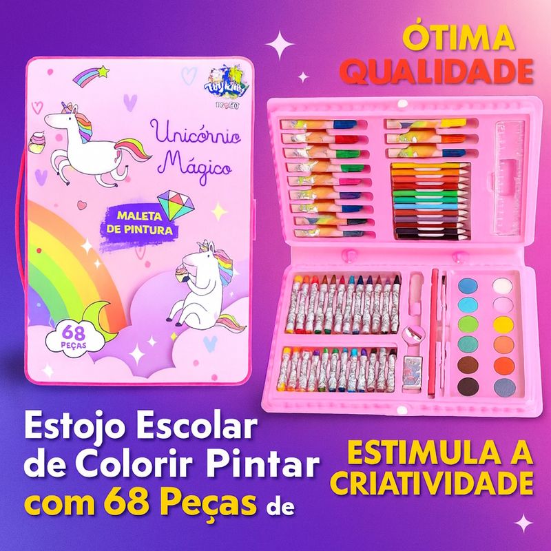 Kit 5 Estojos de Pintura Infantil com Jogo de Canetinhas Para Pintar Unicórnio Mágico - 68 Peças Atacado Revenda Lojista Lembrança Festa