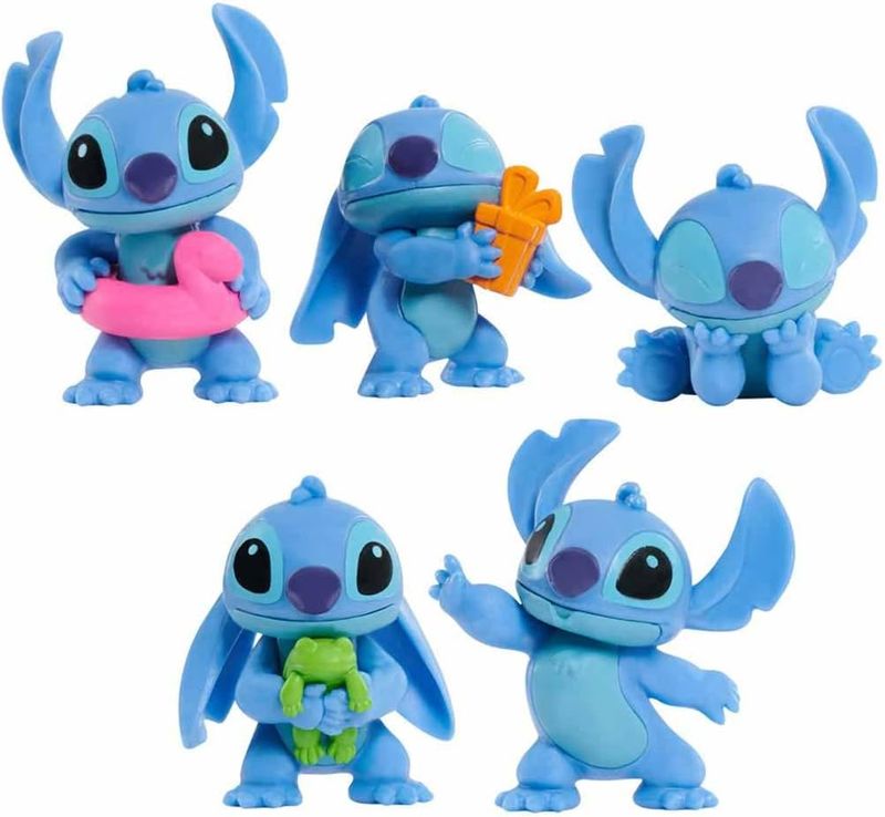 Leve para casa as aventuras de Lilo e Stitch da Disney com este conjunto colecionável com 5 mini figuras de 4cm. Elas são altamente detalhadas e se parecem examente como no filme. O conjunto inclui 5 figuras do Stitch, em poses mega divertidas.