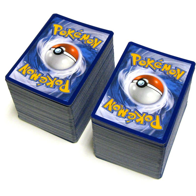 O lote com 50 Cartas Pokemon inclui cartas Comuns/Incomuns/Energia/Treinadores e 2 brilhantes (holo ou reverse foil)