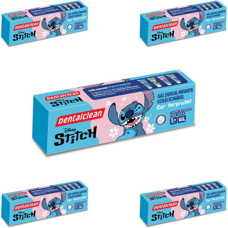5X GEL DENTAL INFANTIL STITCH SABOR MORANGO 104G COLECIONÁVEL - 3ANOS+ - DENTALCLEAN