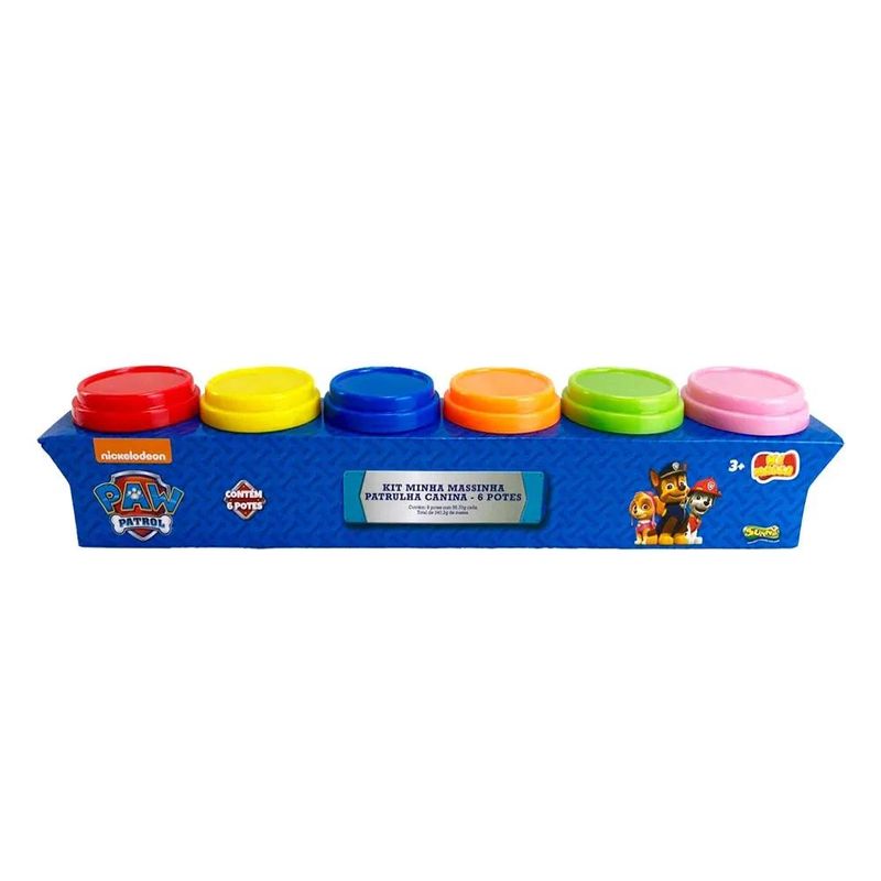 O kit massa patrulha canina sunny com 6 cores é perfeito para estimular a criatividade da criançada São 6 potes de massinha de mode lar e 6 moldes para os pequenos modelarem seus personagens favoritos da patrulha canina e criar histórias incríveis. Com o kit massa patrulha canina, as crianças se divertem enquanto desenvolvem a coordenação motora e a percepção estética.\n\nIdade recomendada:3 anos;Composição/Material:massinha;Funciona com pilhas:não;Brinquedo com luz:não;Brinquedo com som:não;Dimensões:6,7x32x6 cm;Peso:0,462 kg;Código de Barras:7899573630416;Garantia do Fornecedor:3 Meses contra defeito de fabricação;