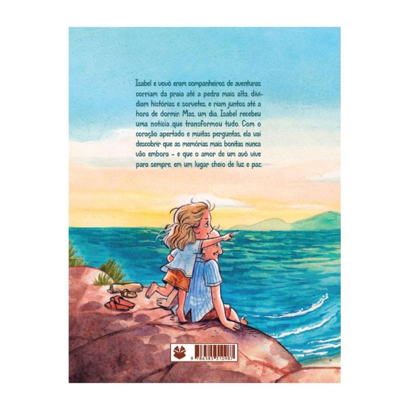 Isabel adorava as férias com o vovô. Juntos, viviam pequenas aventuras: passeios até a praia, histórias contadas à noite e estrelas cadentes. Mas ela nunca conseguia ouvir o fim das histórias do avô… sempre adormecia antes. Até que, em um dia comum, Isabel recebe a notícia que mudaria tudo: o vovô partiu. Cheia de saudade e dúvidas, a menina encontra consolo numa resposta simples e terna de sua mãe — e finalmente compreende que a última história do vovô não terminou, apenas começou em outro lugar. Uma história comovente e cheia de ternura sobre perda, memória e esperança na vida eterna, escrita por Araceli Alcântara e ilustrada por Felipe Gianni. Para conversar com as crianças sobre a morte com cuidado e fé. Para crianças de 5 a 9 anos.