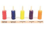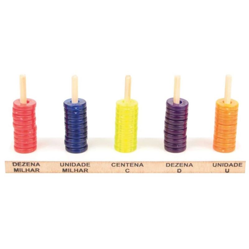 O ábaco é um instrumento utilizado para realizar cálculos, proporcionando uma aprendizagem prática.Possibilita desde o reconhecimento de quantidades desde cálculos com as quatro operações.Descritivo detalhado: Confeccionado em M.D.F. plástico e madeira, base com serigrafia atóxica, medindo 30 x 7 x 9 cm, 05 varetas fixas na base e 50 argolinhas de P.V.C. rígido coloridas.Embalagem: Película de P.V.C. encolhível.