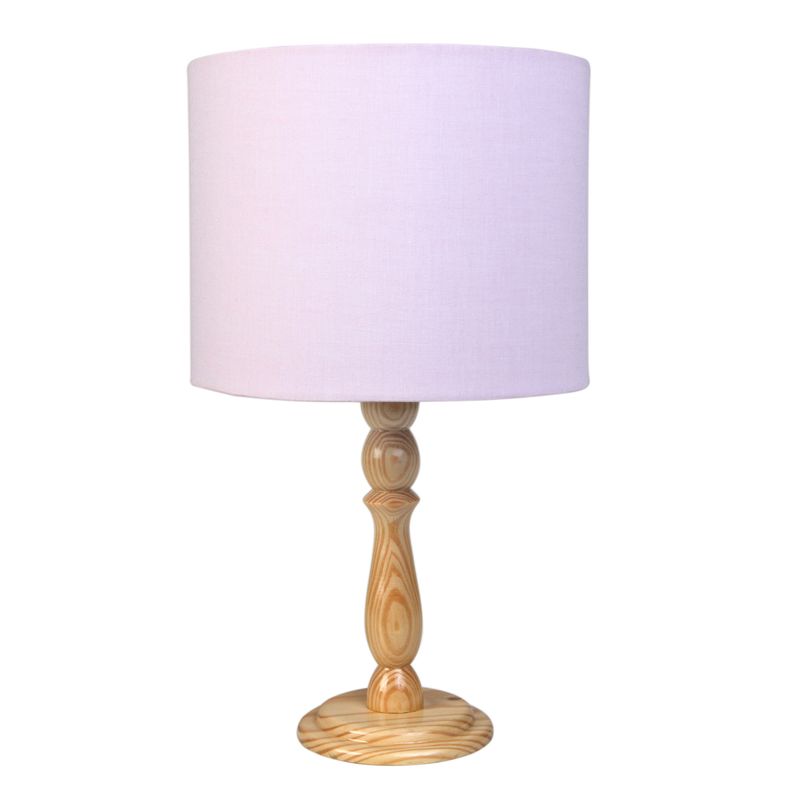 Abajur com base de madeira pinus torneada, pintura com Verniz Incolor, cúpula forrada com tecido.