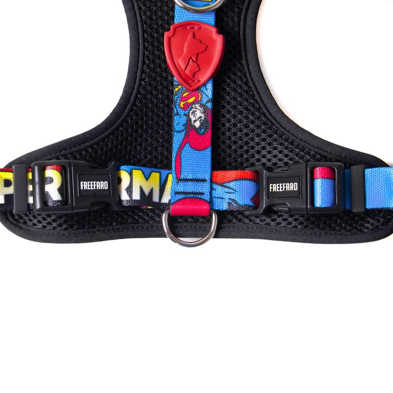 Peitoral Air para cães Superman. O Peitoral Air Freefaro é um acessório premium para cães que oferece conforto, segurança e estilo durante os passeios. Com design moderno e alta durabilidade, é fácil de ajustar e perfeito para cães ativos de todas as raças. Com ele, seu cão desfrutará de passeios mais seguros e confortáveis, mantendo um estilo d e vida saudável e ativo. Produto original e licenciado pela Warner Bros. Consumer Products. Feito em Neoprene, modela-se perfeitamente ao corpo do pet; É o peitoral mais seguro, pois prende-se ao corpo do animal em 2 pontos (pescoço e cintura); Tira em Poliéster super macia e resistente, é a mesma utilizada em cintos de segurança; Tecnologia inTransfer garante a estampa com cores mais vivas; 100% ajustável ao corpo do animal; Fecho resistente com engate rápido e 4 pontos de segurança.