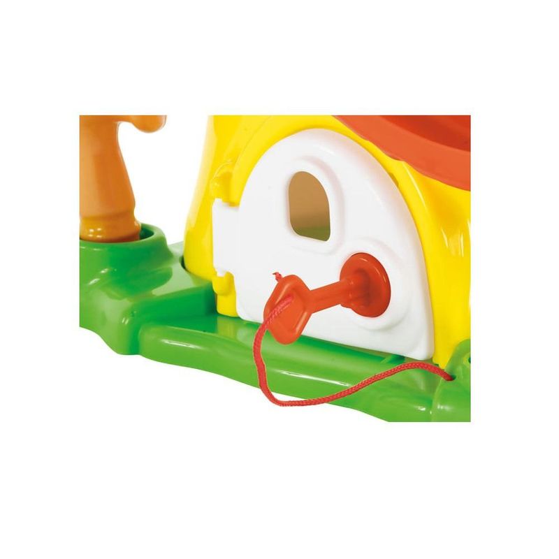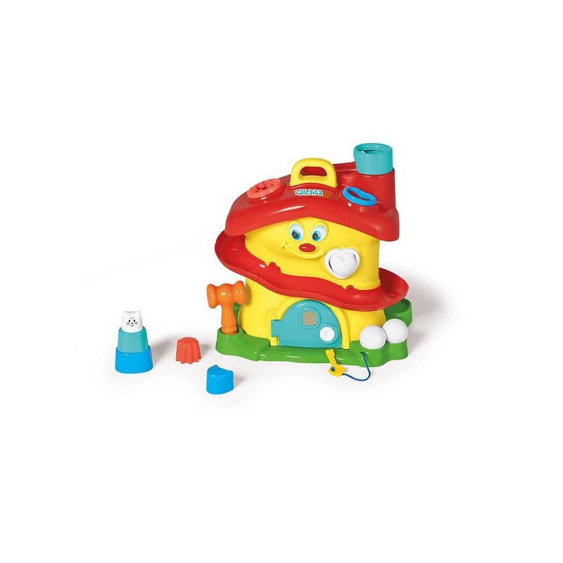 Activity House Tateti Uma linda casinha com atividades divertidas e didáticas para o seu bebê! A Activity House é um brinquedo didático para crianças a partir de 18 meses. Vem com bloquinhos coloridos que ensinam a distinguir cores, formas e tamanhos. A portinha abre e fecha com chave para que a criança possa pegar os bloquinhos de volta. A brincadeira fica mais divertida com a bolinha que entra pela chaminé e cai por um tobogã em volta da casa. O brinquedo ainda vem com um martelinho que impulsiona a bolinha e afina a coordenação motora do bebê. Este produto faz parte da linha de brinquedos educativos da Tateti. As cores podem variar de acordo com o estoque