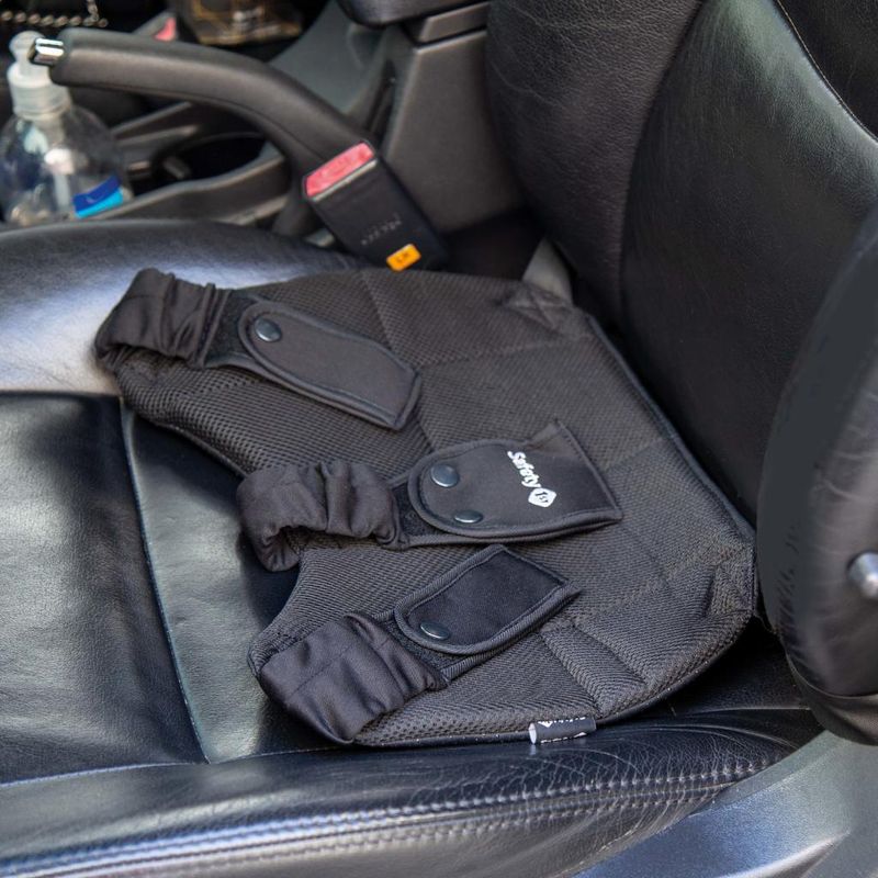 Auxilia no posicionamento correto dos cintos de segurança do veículo, guiando o cinto subabdominal por baixo do ventre, evitando desconforto e protegendo o bebê.