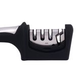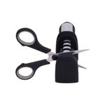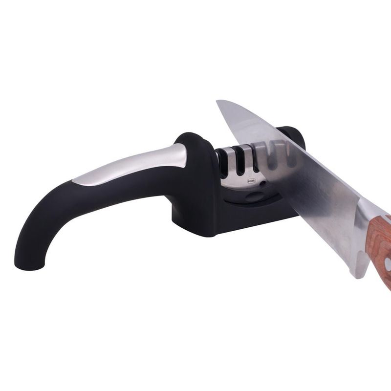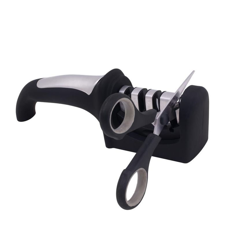 O Afiador 4 em 1, como o próprio nome diz, possui um design direcionado para a praticidade: são 4 funções diferentes em apenas um produto! Ideal para afiar facas, amolar e dar acabamento, bem como afiar tesouras. Simples de usar, basta direcionar a faca ou tesoura na direção da flecha indicada no suporte. Equipado com lâmina de aço tungstênio e produzido em aço inox 201, ABS, cerâmica zircônia, esmeril e borracha, o afiador garante um afiamento preciso com apenas algumas passadas. Contando com um design ergonômico composto por uma base emborrachada e antiderrapante com alça estável, proporciona mais segurança e precisão para quem está manuseando. Ideal para manter os utensílios de cozinha sempre afiados e prontos para uso, prolongando ainda mais a vida útil. Compatível com facas e tesouras Mor!