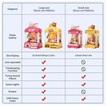 Conteúdo da embalagem: 1 máquina de garra, 1 cabo USB, 55 peças de prêmios (20 mini pelúcias, 10 ovos surpresa, 25 moedas de jogo)
