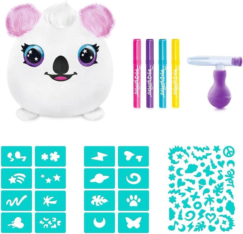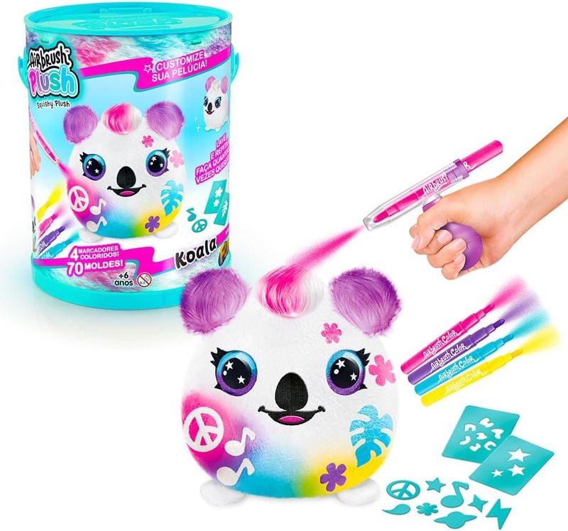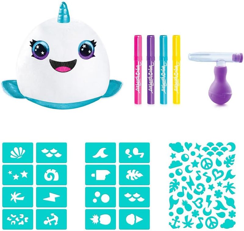 O kit contém 2 seringas aerógrafas para colorir, sticks para molde de pintura e 4 canetas para colorir.