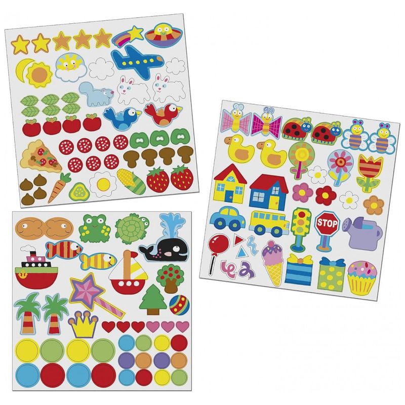 Inclui livro de atividades robusto de 50 páginas e 69 adesivos
