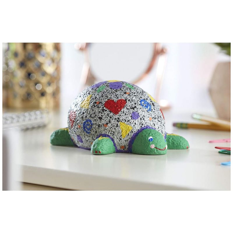 Inclui 1 animal de estimação tartaruga, 6 tintas à prova de intempéries e um pincel.