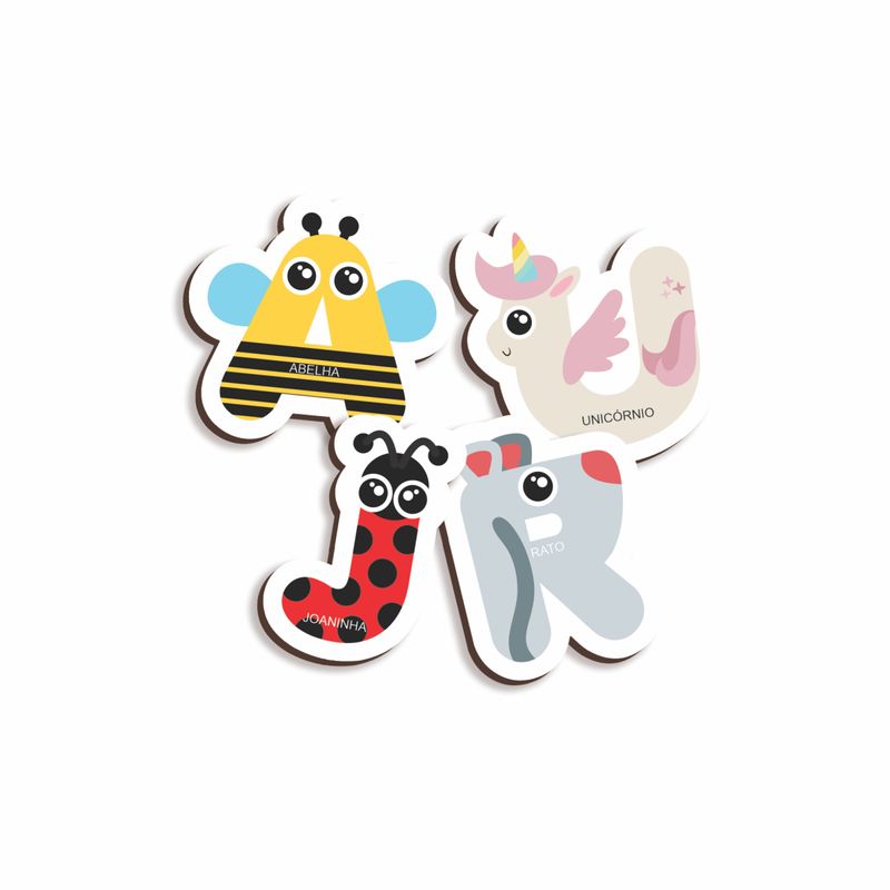 Reforça o aprendizado do alfabeto de maneira divertida e criativa! Contém 26 letras de madeira Divertido e alegre conjunto do alfabeto.
