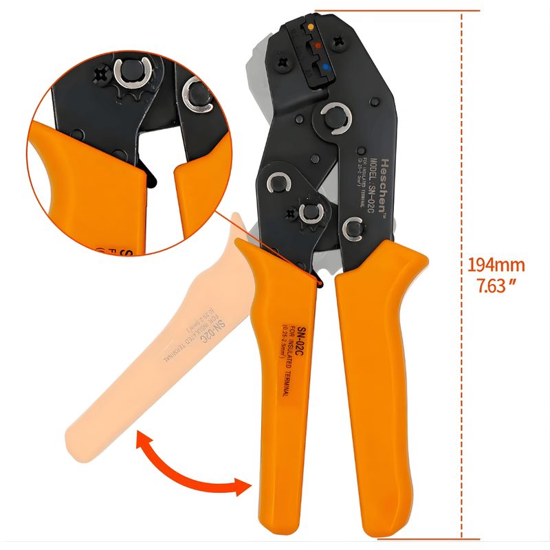 Descubra o Alicate para Crimpagem de Fio SN-02C, a ferramenta multifuncional indispensável para profissionais e entusiastas de elétrica e eletrônica. Com cabo ergonômico em cor laranja vibrante, oferece conforto e segurança em trabalhos de crimpagem precisos, reduzindo a fadiga mesmo em uso prolongado. Seu design robusto e mecanismo de alta eficiência garantem crimpagens firmes e duráveis em terminais isolados de 0,25 a 2,5 mm², facilitando conexões confiáveis e seguras. Compacto, com 19,4 cm, é ideal para uso em espaços reduzidos, proporcionando praticidade e agilidade. A qualidade do aço e acabamento diferenciado asseguram longa vida útil, mesmo sob uso intenso. A escolha certa para quem busca precisão, resistência e desempenho superior em ferramentas para elétrica.
