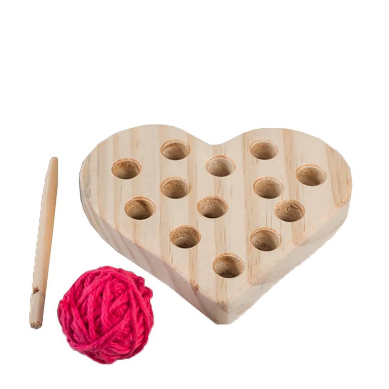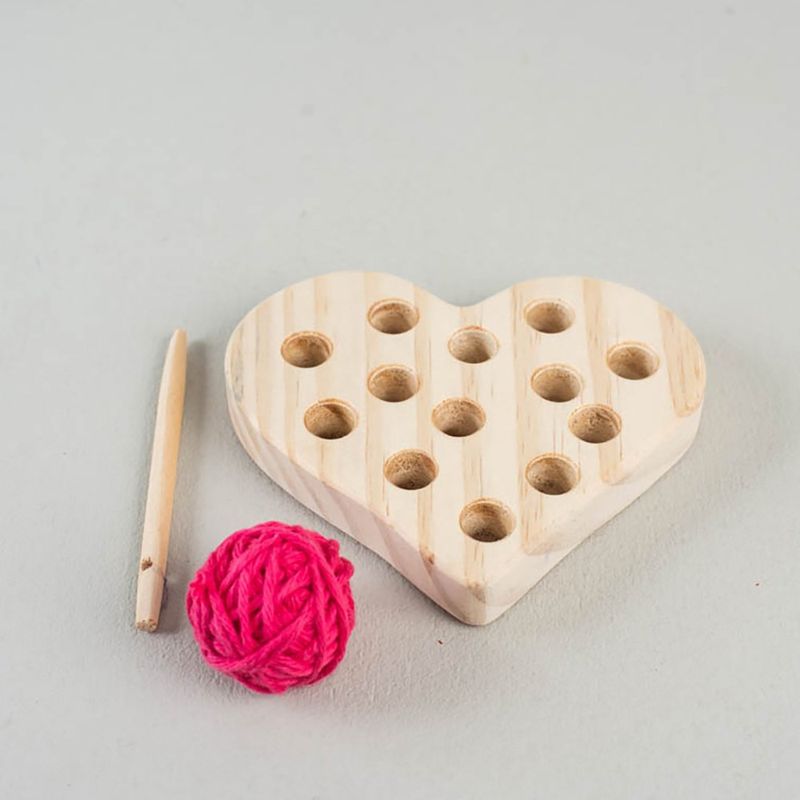 O Alinhavo de coração em madeira vem acompanhado de novelo 100% algodão e agulha de madeira para iniciar a atividade, mas você pode deixar a criatividade solta e usar fitas de cetim, barbantes e cordão (pode ser até cadarço velho que você pode pintar com canetinha para ele ficar lindo de novo!).
