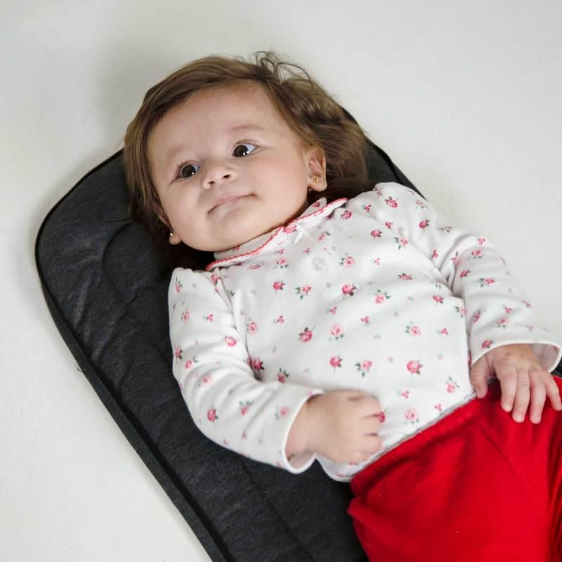 Feito em algodão, com toque macio e muito confortável, acompanha o crescimento do bebê: possui zíper em toda a volta, para remover completamente a lateral elevada, e ser usado como um colchonete, proporcionando mais conforto para as crianças maiores, mesmo sentadas, nos passeios com o carrinho.