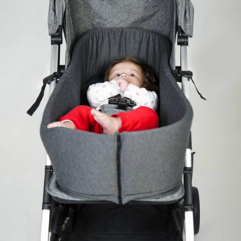 O ninho que transforma qualquer assento de carrinho em um confortável e aconchegante moisés. Laterais altas com zíper, removíveis, para uso também como colchonete.