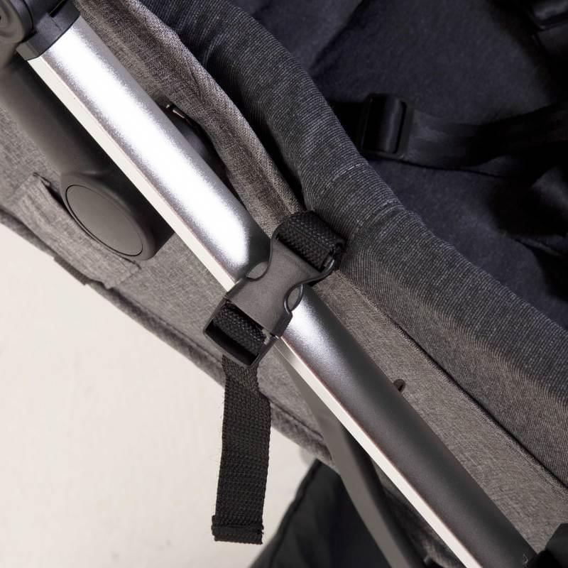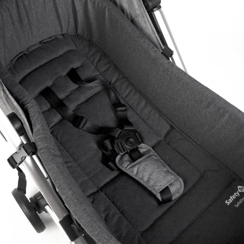 Possui aberturas universais, para a passagem dos cintos e tiras com fivelas de fixação laterais. Encaixa em praticamente todos os modelos de carrinhos, oferecendo segurança nos passeios com o bebê.