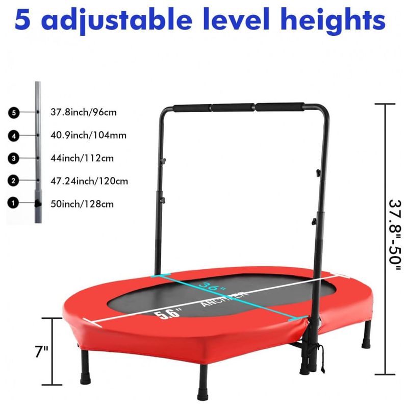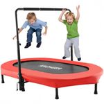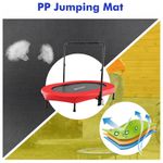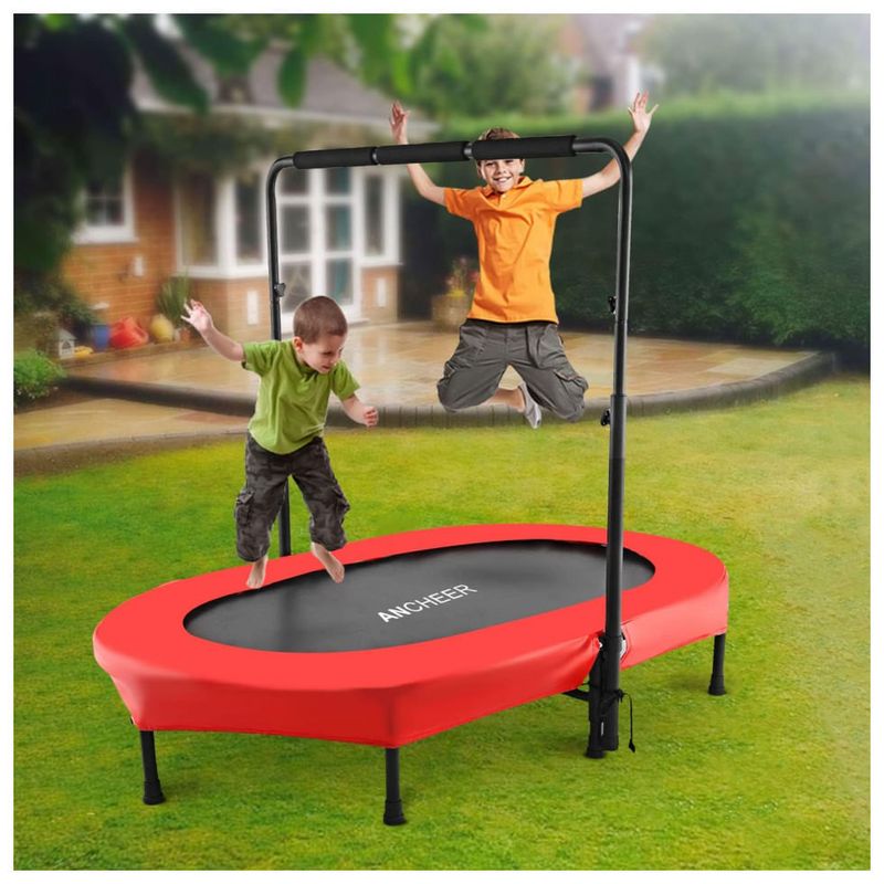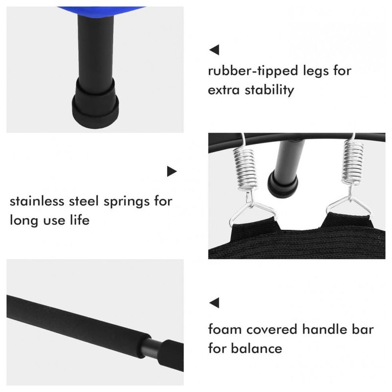 Boa qualidade estrutura resistente, tapete de salto pp, capa de almofada segura em pvc, molas de aço inoxidável, tubo de perna com ponta de borracha e alça coberta de espuma, oferece um ambiente muito mais para crianças, melhor para 3 anos ou mais