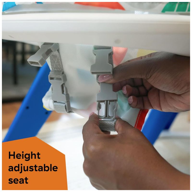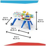 Possui 4 modos de jogo e aprendizado: andador estacionário ajustável, mesa sensorial com 15+ brinquedos e atividades, mesa de arte para crianças pequenas e 5 estações de jogo removíveis.