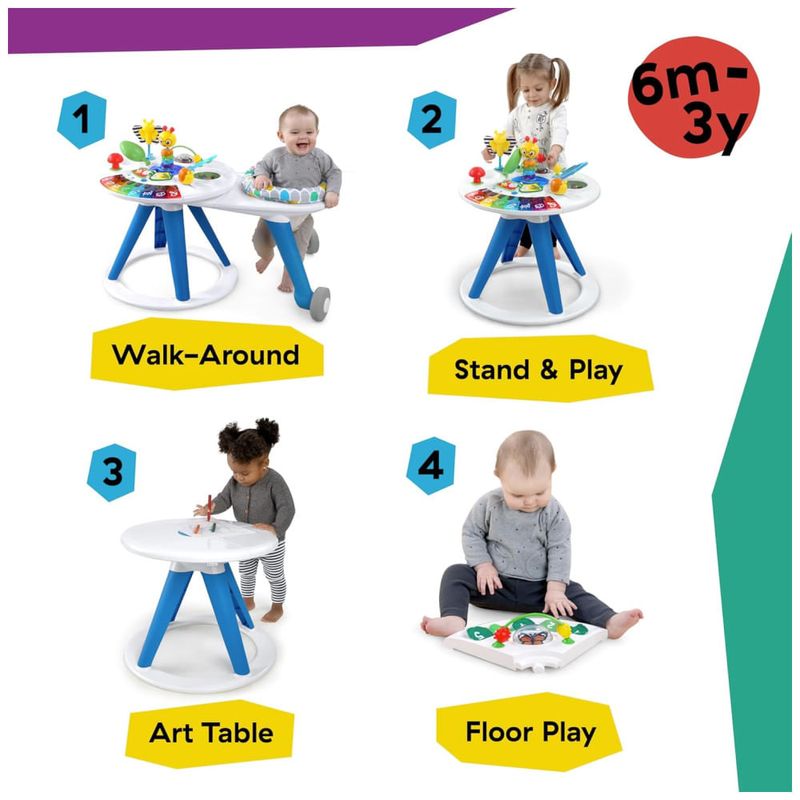 O Baby Einstein Around-We-Grow 4-in-1 Discovery Center é um centro de atividades multisensoriais e andador estacionário que se transforma para atender às necessidades de brincadeira do bebê de 6 meses a 3 anos.