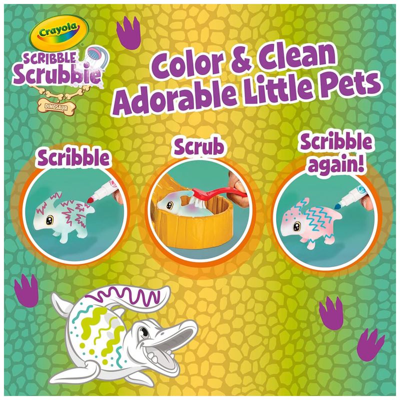 Este conjunto de toboágua Scribble Scrubbie Dinosaurs é perfeito para as crianças que amam dinossauros Com este conjunto, elas podem criar seus próprios amigos dinossauros personalizados usando gotas coloridas e marcadores laváveis incluídos. Além disso, as tintas laváveis facilitam a limpeza dos dinossauros e das mãos das crianças. Este conjunto é uma ótima alternativa aos livros para colorir de dinossauros e brinquedos de pelúcia, proporcionando uma maneira divertida de emocionar seu filho e estimular sua imaginação O conjunto inclui 1 ambiente de cachoeira, 4 animais de estimação dinossauros, 3 frascos coloridos e 1 escova de limpeza. Para mais amigos animais, colete pacotes de expansão Scribble Scrubbie adicionais vendidos separadamente. Lembre se de usar apenas marcadores Crayola UltraClean para seus animais de estimação Scribble Scrubbie. Este conjunto é um ótimo presente de Natal para meninos e meninas a partir de 3 anos.