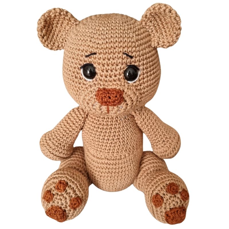 Feito à mão com fios antialérgicos, este urso é a escolha perfeita para quem busca simplicidade e encanto em um só lugar! Com seu design adorável e cores suaves, este urso é um presente carinhoso ou uma decoração encantadora para qualquer ambiente. Leve para casa a beleza do artesanato e desfrute de momentos aconchegantes com esta criação única.! Podem ocorrer alterações no produto conforme a confecção de cada artesã. As cores podem variar em tons próximos ao original (devido a luminosidade do local em que a foto foi tirada), a espessura do fio varia de acordo com a produção do lote e o tamanho dos produtos pode variar em poucos centímetros.