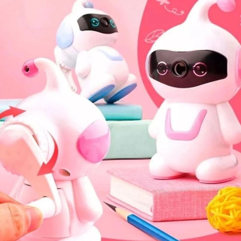 Apontador Manual De Mesa Cyber Robozinho Rosa - Kz248 - Kaz