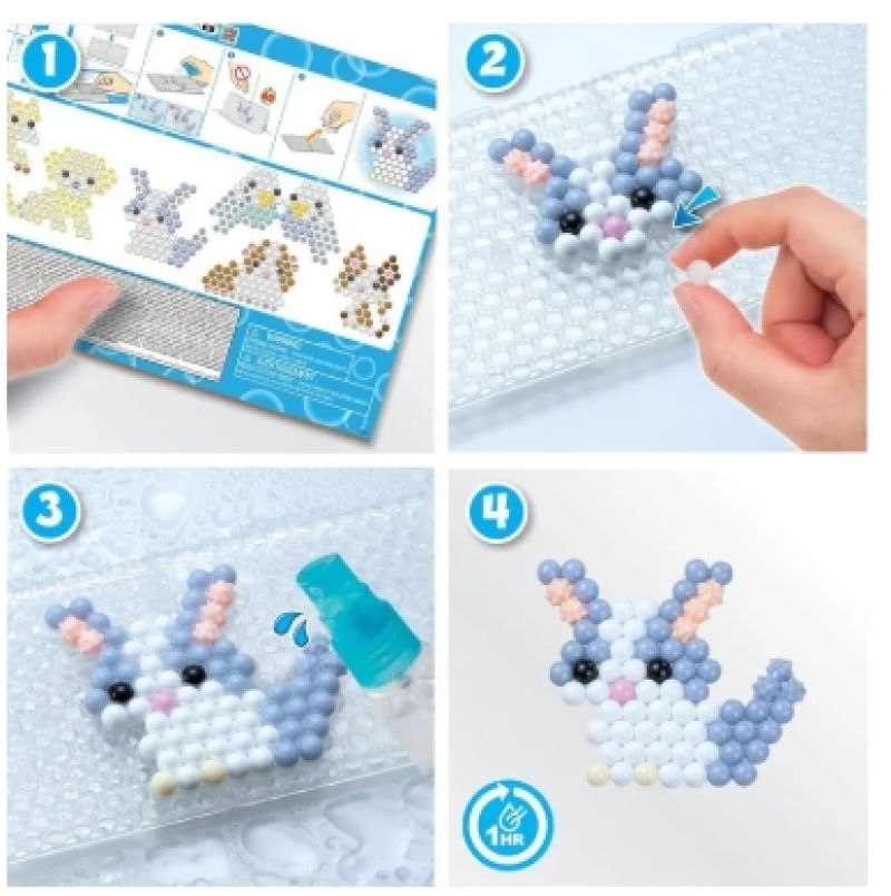 Aquabeads - Enfres Pretty Pets Craft Kit Aquabeads é o Kit Original de Artesanato de Miçangas Ativado por Água! Desde 2004, crianças de todo o mundo criaram milhões de designs de Aquabeads. O Pretty Pets Craft Kit inclui 500 miçangas, 2 bandejas de layout pequena, pulverizador e uma folha de modelo com instruções. Seguindo a folha de modelo, coloque as miçangas na bandeja para criar designs lindos de animais como gato, cachorro, coelho e muito mais. Usando o pulverizador, borrife água nas miçangas para fazê-las grudar magicamente! Inclui 500 miçangas lisas, em formato de joia e de estrela em 21 cores, incluindo as novas “Miçangas Brilhantes” cintilantes, 2 bandejas de layout pequena, pulverizador e folha de modelo com instruções. Para crianças a partir de 4 anos.