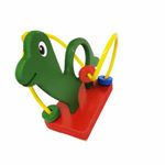Possui aramados para que a criança possam mover as peças fazendo movimentos com as mãos, além das peças coloridas em sua base de madeira, não tem peças soltas sendo assim é capaz de entreter toda a criançada com bastante segurança.