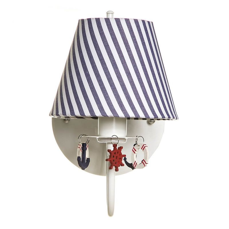 Arandela para 1 lâmpada em alumínio com pintura epóxi, cúpula forrada com tecido e decorado com peças em acrílico de tema náutico.
