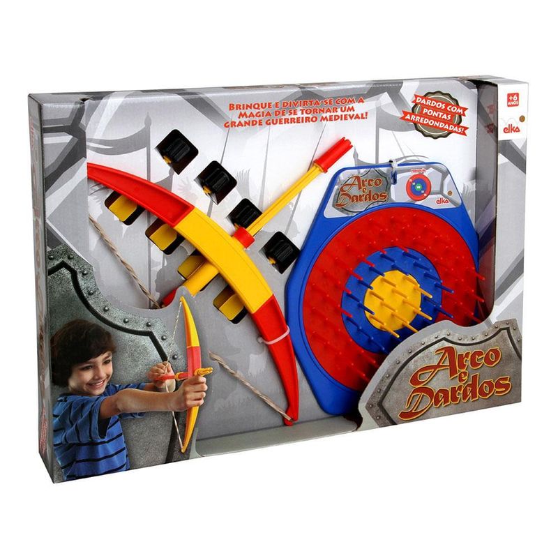 Ficha Técnica:Marca: Elka;Nome do produto: Arco e Dardos;Idade recomendada: A partir de 6 anos;Selo Inmetro: 002334/2019 - OCP006;Contém: 1 Arco, 1 Alvo e 4 Dardos.