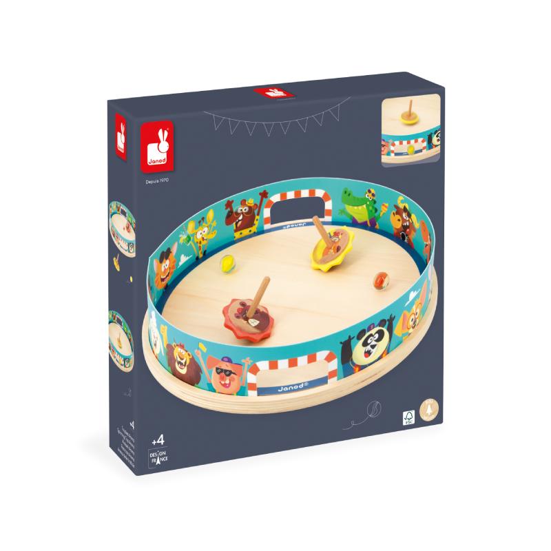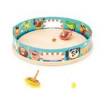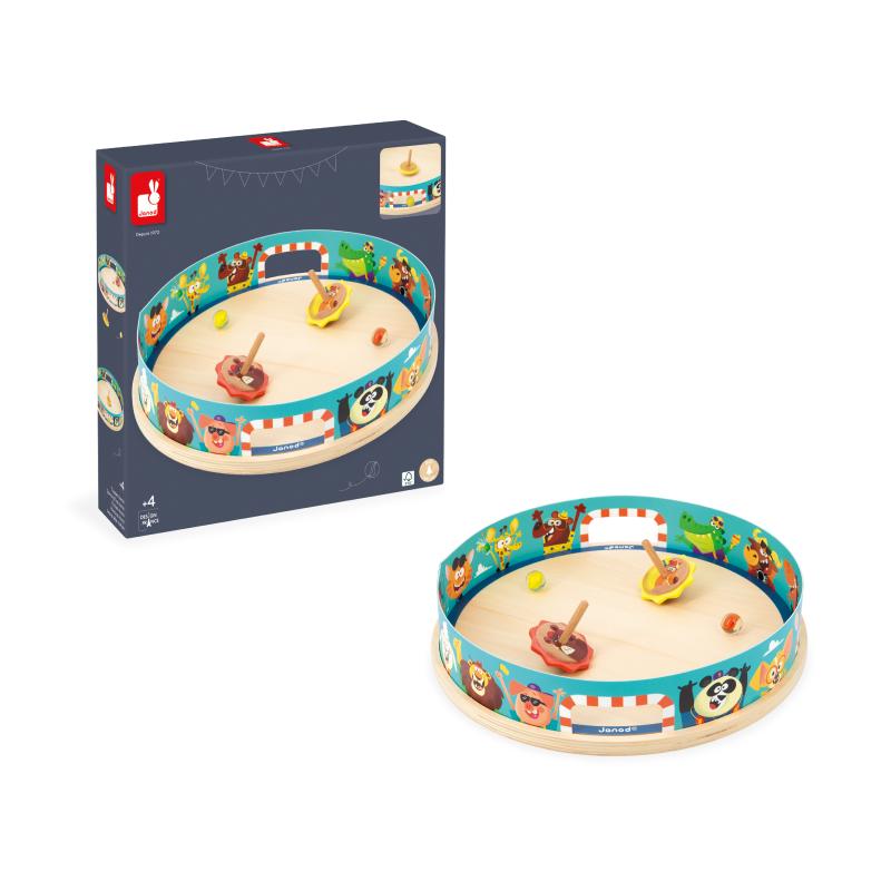 A arena e as piões são ideais para crianças a partir de 4 anos. Contém 1 arena ilustrada, 2 piões com lançadores e 2 bolinhas de vidro. Quem será o primeiro a empurrar a bolinha pelo gol do oponente.