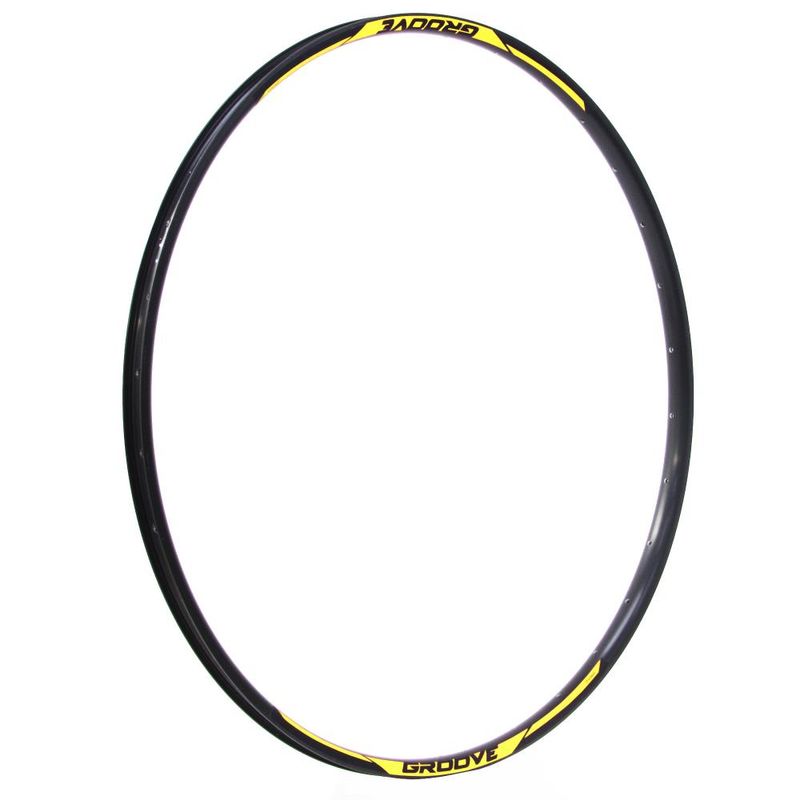 Aro Alumínio 29" 32F com Ilhós Disco F/V Parede Dupla Preto com Adesivo Groove AmareloO Aro Alumínio 29" 32F oferece resistência e desempenho, perfeito para ciclistas que buscam durabilidade e estilo. Com 32 furos e ilhós, é compatível com freios a disco e apresenta parede dupla, garantindo maior rigidez e resistência. O adesivo Groove amarelo adiciona um toque de estilo à sua bike.Características:Tamanho: 29"Furos: 32 furos com ilhósFreio: Compatível com freio a discoMaterial: Alumínio resistente e leveCor: Preto com adesivo Groove amareloParede: Dupla (maior resistência)Peso: 750gAproveite o Aro Alumínio 29" 32F e garanta mais desempenho e estilo para a sua bike!